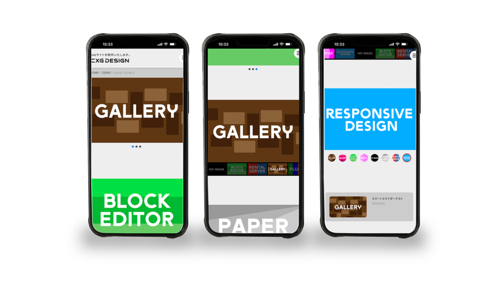 では、いくつかデモとして、SmartSliderで作成したスライダーを簡単な設定とともに紹介いたします。